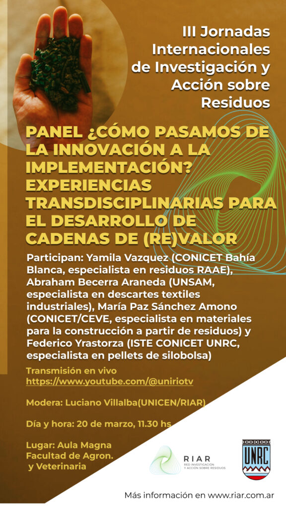 Jornadas 2026 Programa Fundamentación Objetivos Grupos Temáticos Circulares Organizadores Presentación de Resúmenes Inscripciones y Aranceles Alojamiento y Transporte Sitio RIAR Jornadas 2026 Programa Fundamentación Objetivos Grupos Temáticos Circulares Organizadores Presentación de Resúmenes Inscripciones y Aranceles Alojamiento y Transporte Sitio RIAR Programa Completo Jornadas Información Práctica, Mapa UNRC e info útil Paneles (Click en la imagen para ver vivo) Talleres Muestras NÚMEROS ARTÍSTICOS (Click en la imagen para ver vivo)